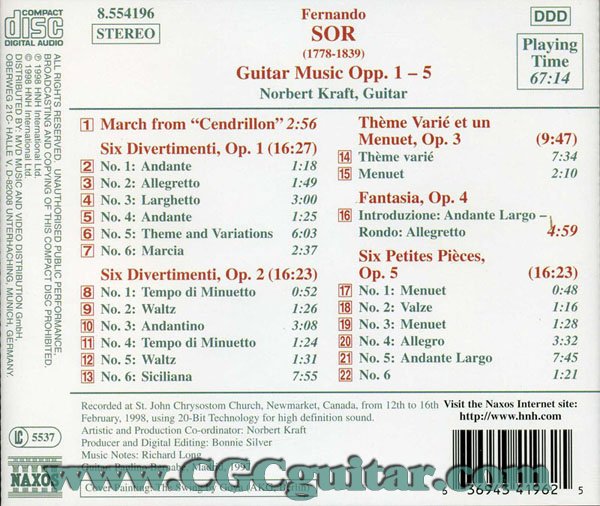 | SOR: Guitar Music Op. 1 - 5 索尔:吉他作品集Op. 1 - 5 |
